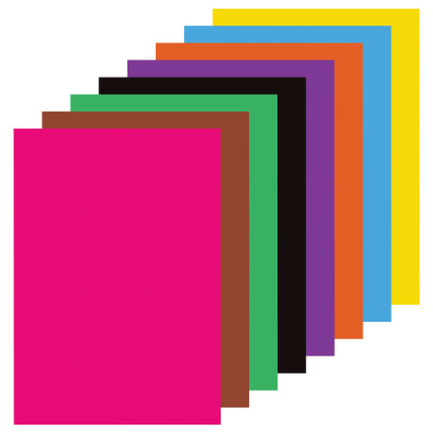 Набор цветной бумаги для детского творчества. Обложка и внутренний блок из мелованной бумаги. Цвета: красный, желтый, оранжевый, зеленый, синий, фиолетовый, коричневый, черный.