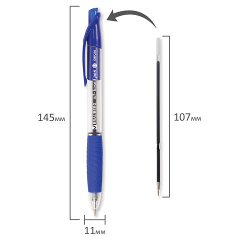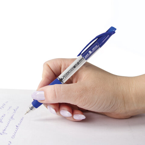 Имеет круглый тонированный корпус синего цвета и резиновым грипом в зоне захвата для удобства письма. Сменный стержень длиной 107 мм с игольчатым наконечником позволит использовать ручку максимально долго. Диаметр пишущего узла, равный 0,7 мм, создает тонкую линию письма, равную 0,35 мм. Специальные масляные чернила синего цвета ультрапониженной вязкости и надежный пишущий узел обеспечивают непревзойденно мягкое и комфортное письмо.