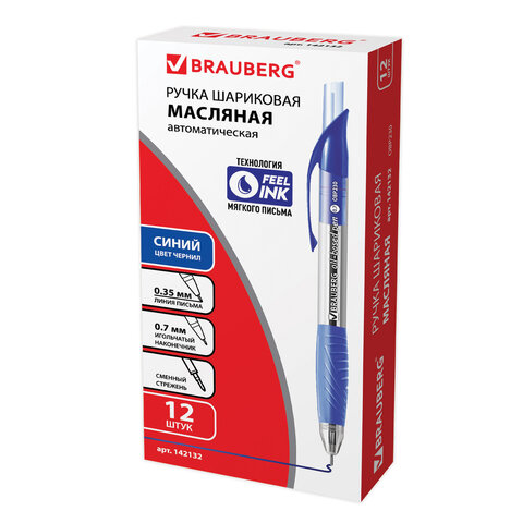 Ручка шариковая масляная автоматическая с грипом BRAUBERG "Jet", СИНЯЯ, узел 0,7 мм, линия письма 0,35 мм, 142132