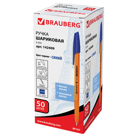 Ручка шариковая BRAUBERG "X-333 Orange", СИНЯЯ, корпус оранжевый, узел 0,7 мм, линия письма 0,35 мм, 142409