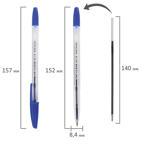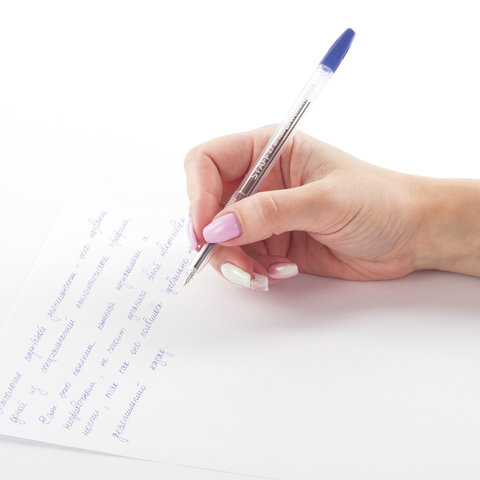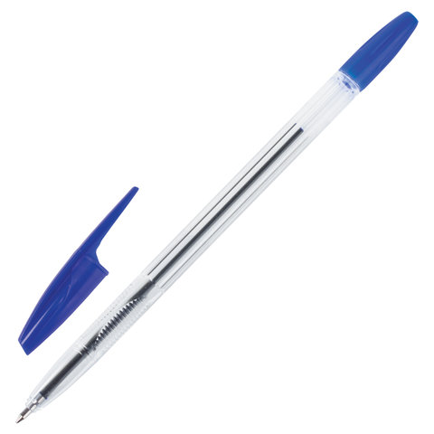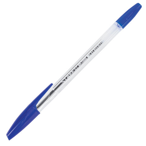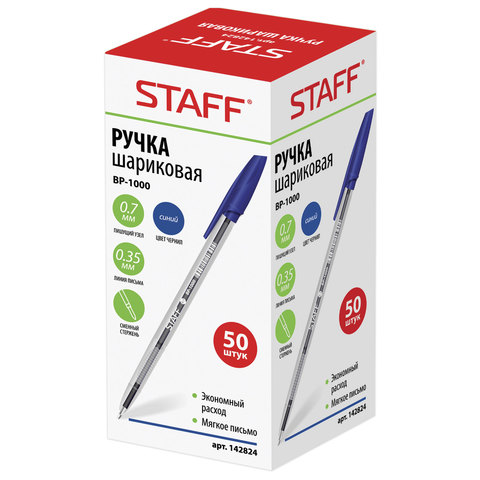 Ручка шариковая STAFF "BP-1000", СИНЯЯ, корпус прозрачный, узел 0,7 мм, линия письма 0,35 мм, 142824