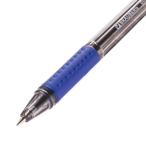 Шариковая масляная ручка в тонированном корпусе с резиновым держателем в зоне захвата. Чернила пониженной вязкости и надежный пишущий узел обеспечивают мягкое и комфортное письмо. Сменный стержень длиной 140 мм. Диаметр пишущего узла 0,7 мм создает тонкую линию письма 0,35 мм. Цвет чернил - синий. Лаконичный дизайн соответствует офисному стилю.