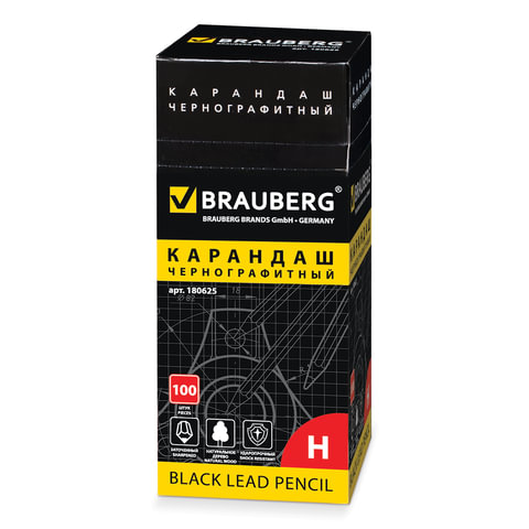 Карандаш чернографитный BRAUBERG, 1 шт., "Touch line", Н, без резинки, корпус черный, заточенный, 180625