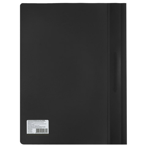 Скоросшиватель пластиковый BRAUBERG, А4, 130/180 мкм, черный, 220382