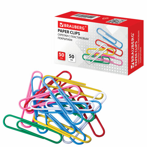 Скрепки большие 50 мм, цветные, 50 шт., в картонной коробке, BRAUBERG, 221533