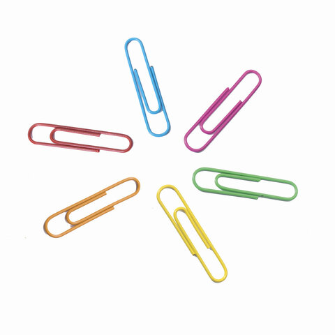 Большие скрепки изготовлены из стали, имеют классическую овальную форму и цветное пластиковое покрытие. Длина скрепки составляет 50 мм. Не окисляются и не повреждают документы. 50 штук в картонной коробке.