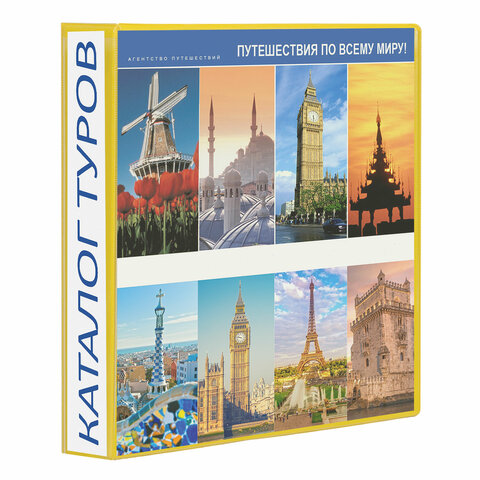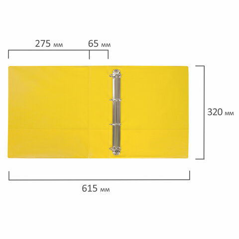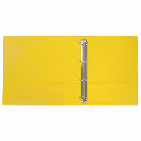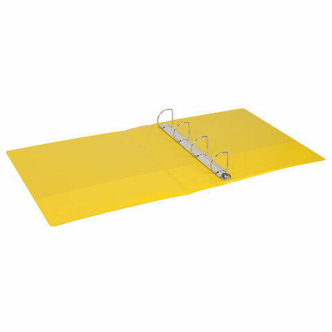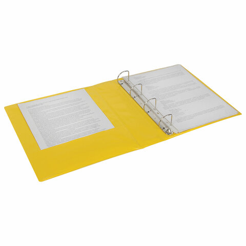Папка на 4 кольцах с передним прозрачным карманом BRAUBERG, картон/ПВХ, 65 мм, желтая, до 400 листов, 223533