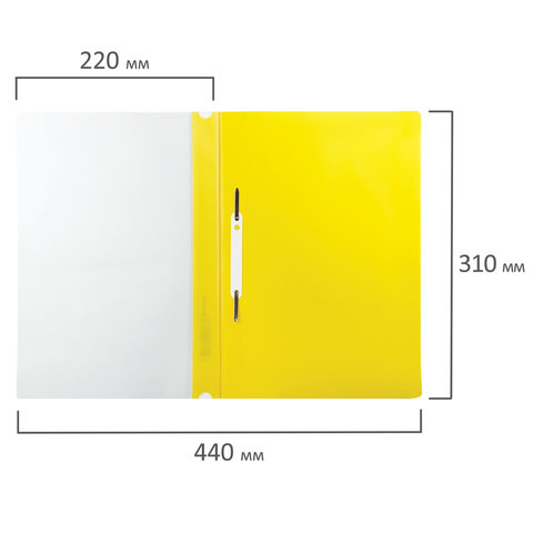 Скоросшиватель пластиковый с перфорацией BRAUBERG, А4, 140/180 мкм, желтый, 226587