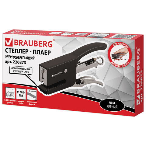 Степлер-плаер №24/6, 26/6 BRAUBERG "Special", до 25 листов, БЕЗ УСИЛИЙ, черный, 226873