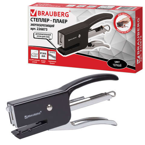 Энергосберегающий степлер-плаер BRAUBERG "Special" № 24/6, 26/6 предназначен для надежного и качественного СКРЕПЛЕНИЯ БЕЗ УСИЛИЙ документов в офисе и дома.