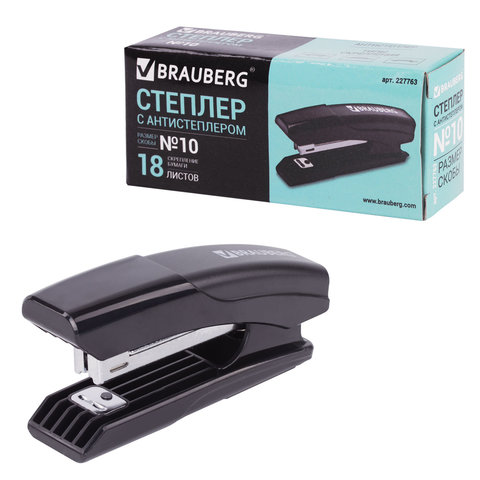 Степлер №10 BRAUBERG "Black Jack", до 18 листов, антистеплер, черный, 227763