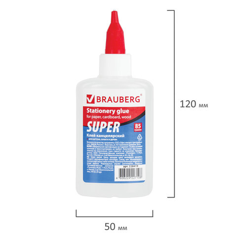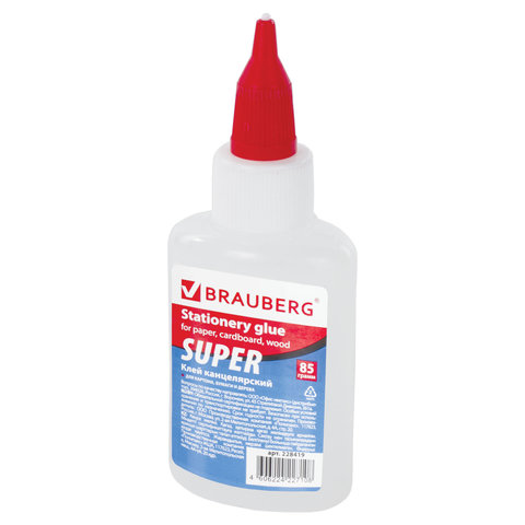 Клей канцелярский BRAUBERG-СУПЕР (для бумаги, картона, дерева), 85 г, 228419