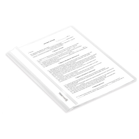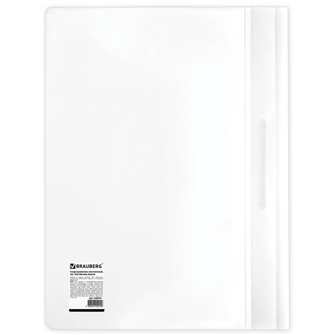 Скоросшиватель пластиковый BRAUBERG, А4, 130/180 мкм, белый, 228676