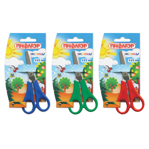 Ножницы ПИФАГОР, 135 мм, с линейкой, цвет ассорти, в картонной упаковке с европодвесом, 231163
