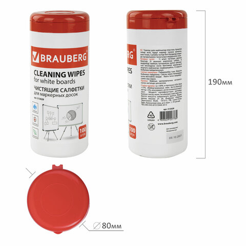 Чистящие салфетки BRAUBERG предназначены для эффективного удаления следов маркера, грязи и пыли с маркерных досок. Деликатно ухаживают за поверхностью.
